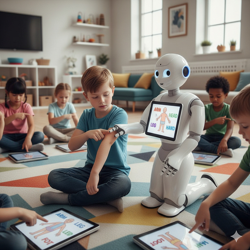 한 예로 휴머로이드 로봇이 자폐 스펙트럼 장애(Autism Spectrum Disorder, 이하 ASD)를 가진 아동과 상호작용 함으로써 아동의 학습을 돕는 역할을 수행할 수 있습니다. ASD를 가진 아동은 타인의 표정, 제스처, 언어적-비언어적 신호를 해석하고 반응하는데 어려움이 많은데, 이러한 아동에게 로봇은 같은 표정을 반복적으로 보여주거나 일정한 목소리 톤으로 말함으로써 아동이 혼란을 덜 느낍니다. 이처럼 로봇은 단순하고 예측 가능한 방식으로 행동하기 때문에 아동이 사회적 상호작용을 연습하고 학습하는데 있어서 안정적인 환경을 제공합니다.